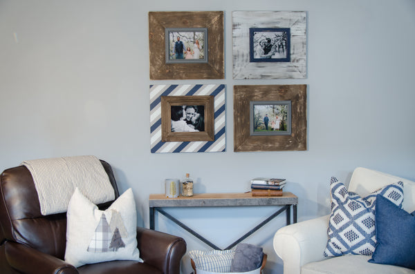 This set of 4 different 8×10 6″ frames is PERFECT for that man cave, living room or cool rugged decor! Hang them together, pull them out as singles. Gift them to your husband to say thanks for the Delta Girl set he bought you. Cool neutrals, blues and raw woods make this set perfect for anyone you know!