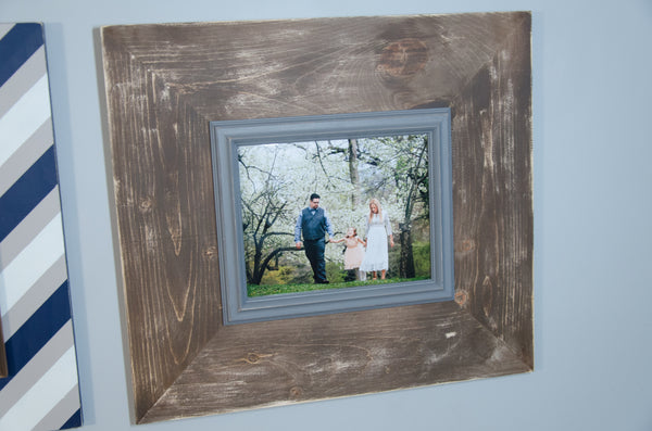 1-8×10, 6″ frame done in our Delta Girl gray wash finished with a Naval herringbone trim